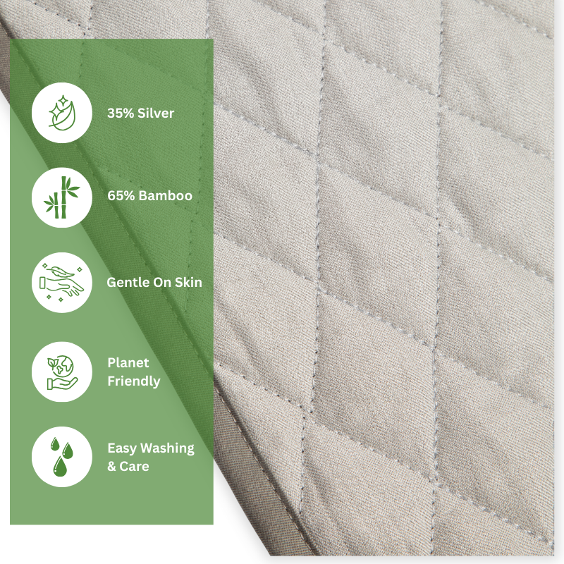35% silver, 65% bamboo fibre blend provides natural antibacterial protection with eco-friendly materials that feel luxurious while delivering optimal conductivity for maximum grounding benefits.